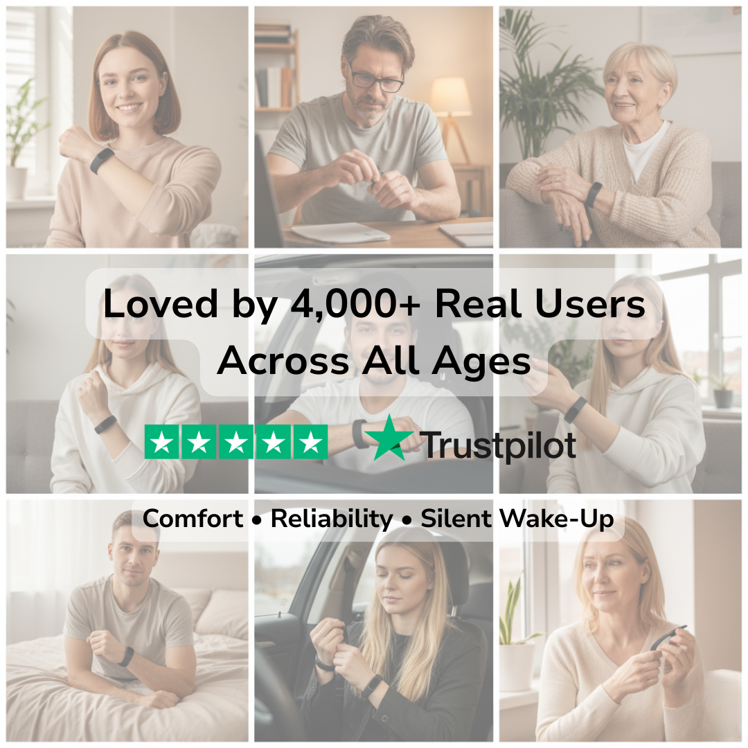 Wear Vibra Band comfortably on your wrist and set your wake-up time in seconds — no app or phone needed.